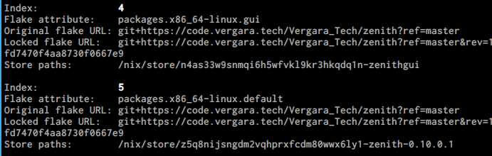 To upgrade a previous version, find the index of the Zenith binaries in your nix